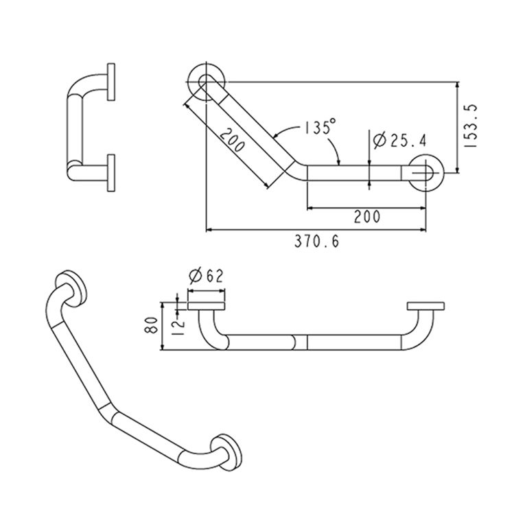 Grab Bar 135 ํ OD 25 mm. Size 200×200 mm. (Left/Right)