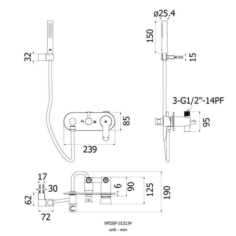 Concealed Single Control Mixer Bath Faucet with Diverter (Overhead Shower is not included in the product set)