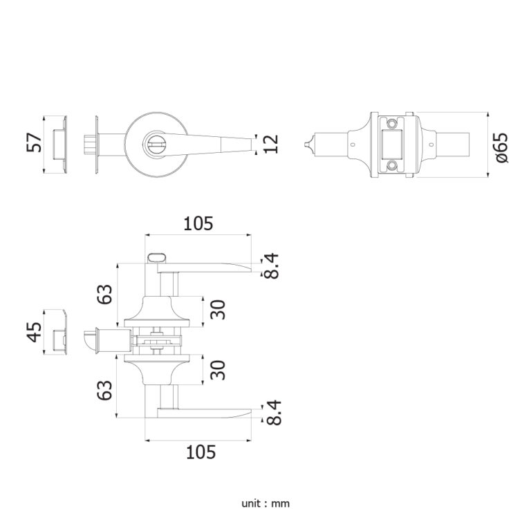 Cylindrical Lever Lockset for Bathroom (without key) TUBULAR LOCK System