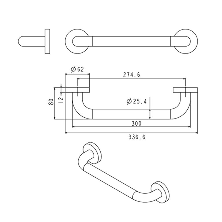 Grab Bar OD 25 mm. Lenght 300 mm.