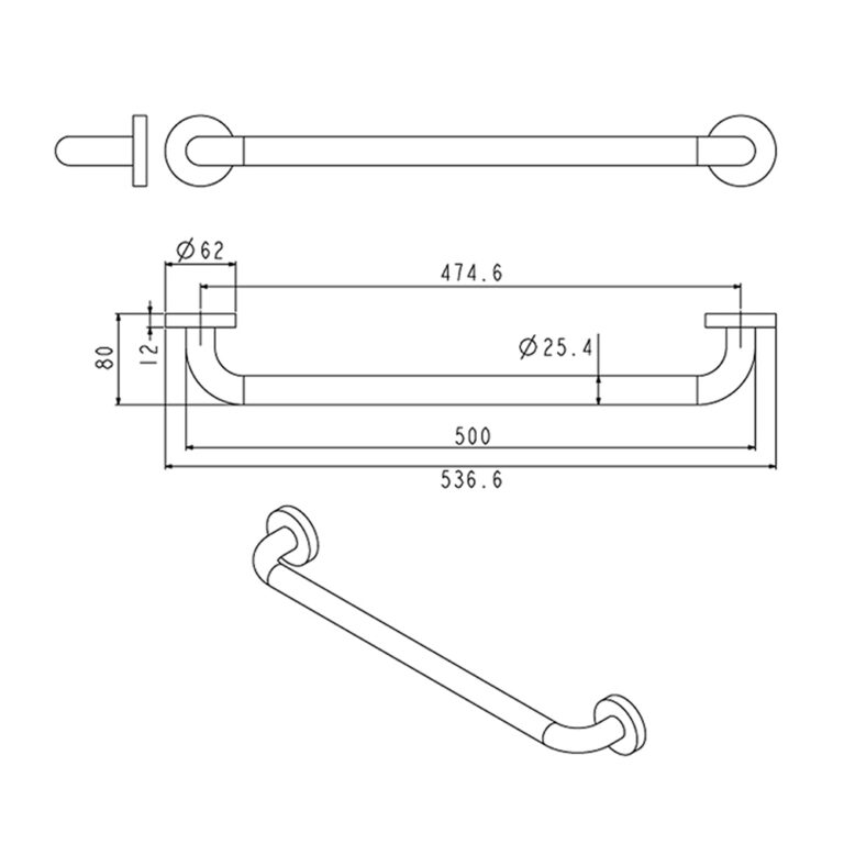 Grab Bar OD 25 mm. Length 500 mm.