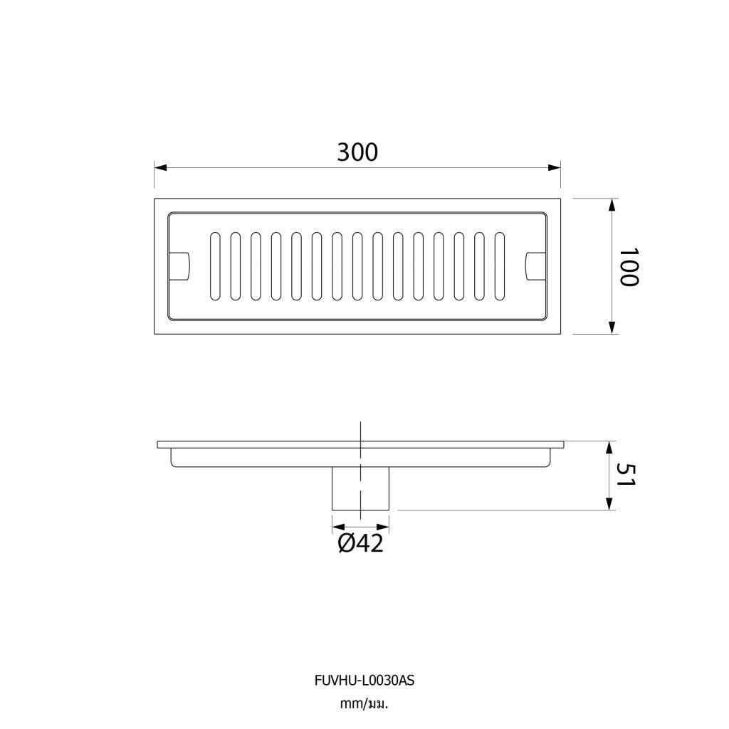 Linear Floor Drain Rectangular – Size: 300×100 mm.