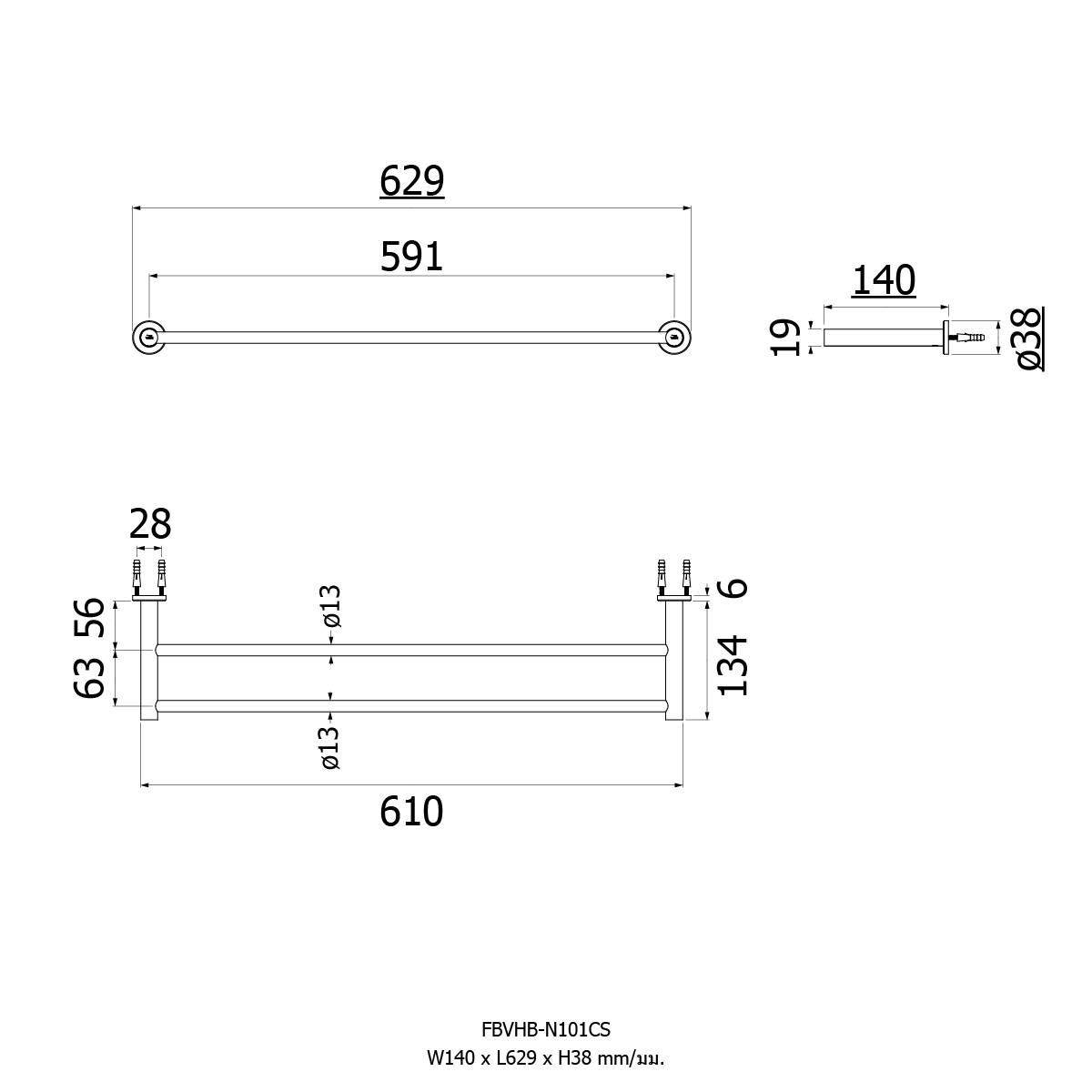 Towel Bar 600 mm. : New Bonny
