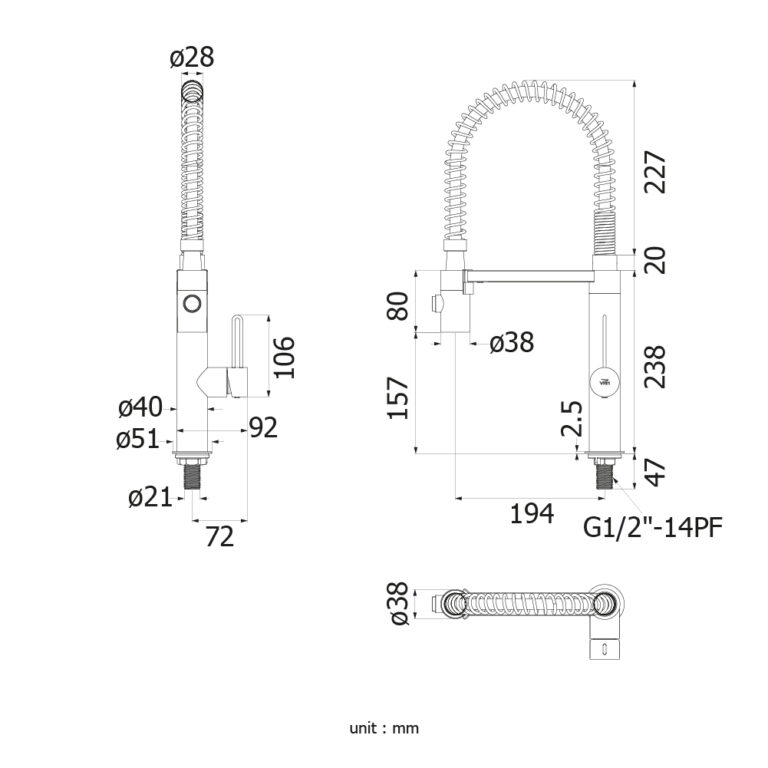 ก๊อกเดี่ยวทรงสูงอ่างล้างจาน คอสปริงระบบน้ำ2รูปแบบ