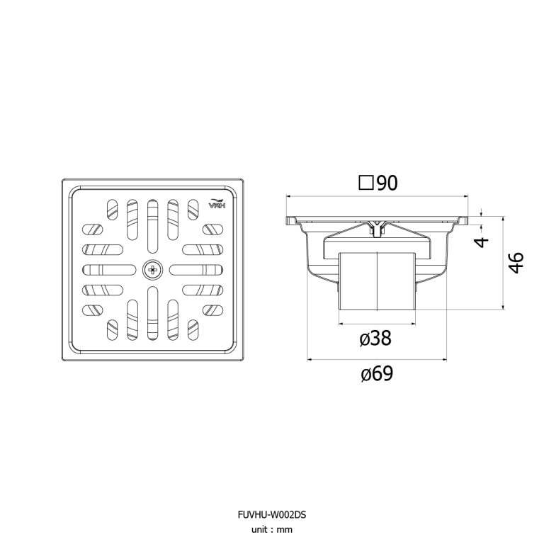 ตะแกรงกันกลิ่นทรงสี่เหลี่ยม 3.5″ฝาเหลี่ยมท่อขนาด 1.5″ อัตราการระบายน้ำ14.00ลิตร/นาที