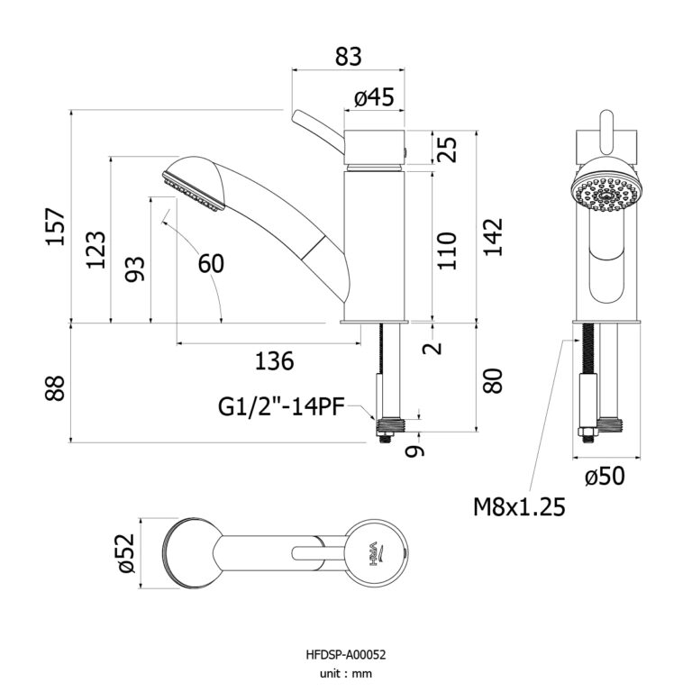 ก๊อกเดี่ยวผสมฝักบัวแบบฝังผนังพร้อมฝักบัวก้านแข็งติดเพดานขนาด10″และฝักบัวมือถือขนาด2″x4″ รุ่น CONTOUR HFVSP-3131C3