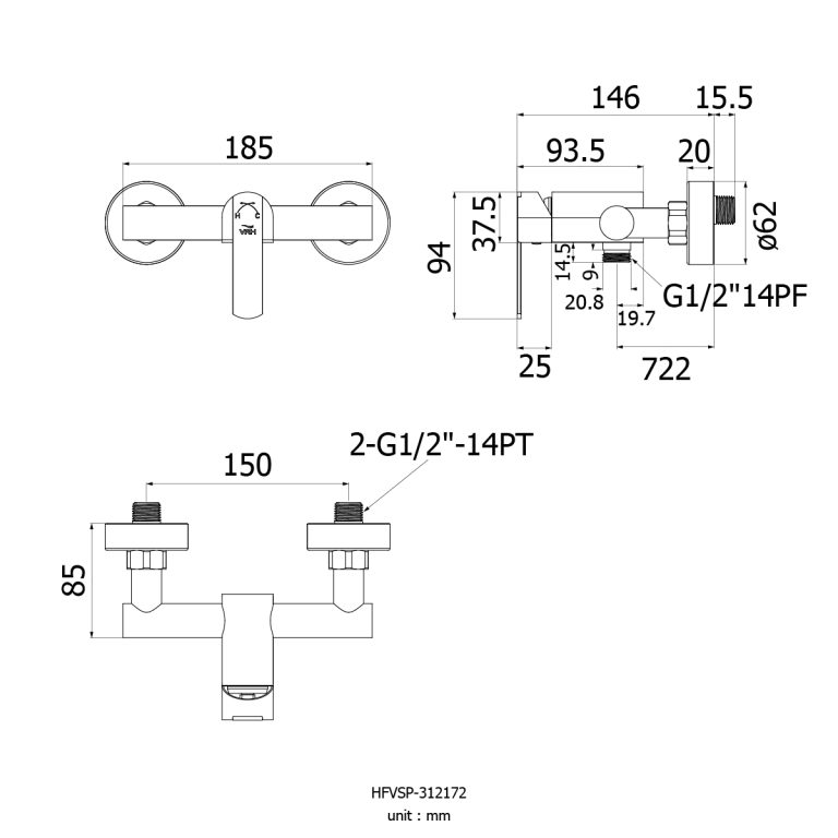 ก๊อกเดี่ยวผสมฝักบัว แบบติดผนัง (ไม่รวมสายอ่อน) รุ่น FORTE