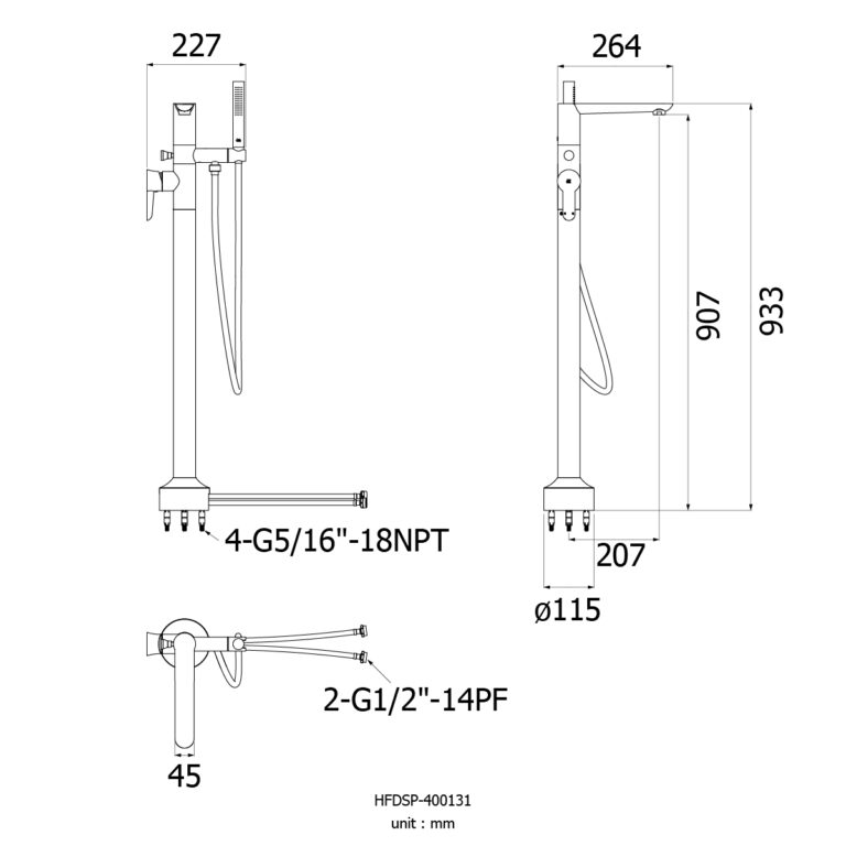 ก๊อกคู่ผสมอ่างอาบน้ำ พร้อมฝักบัวมือถือ รุ่น SMOOTH