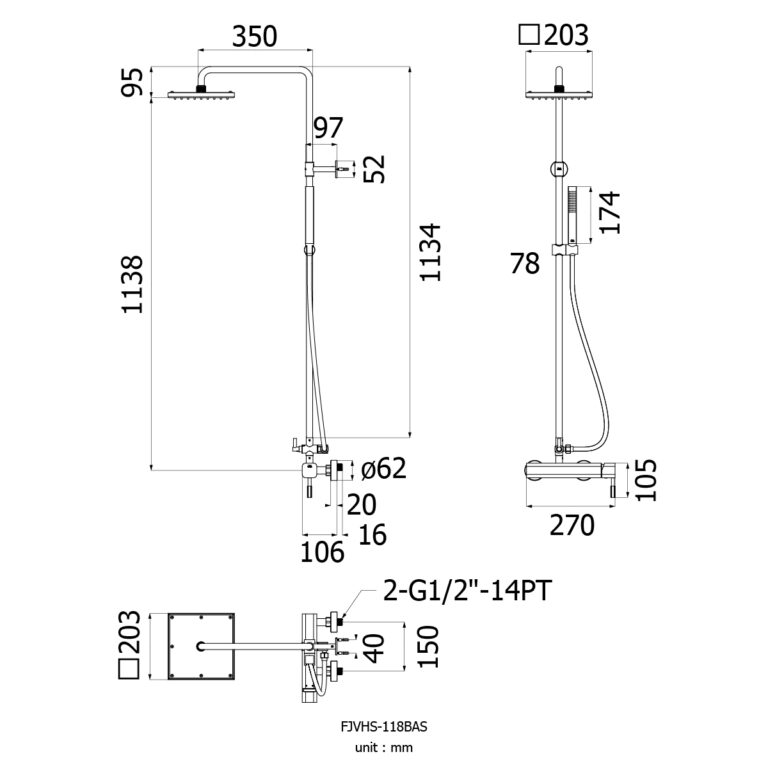 ชุดฝักบัวก้านแข็ง วาล์วเดี่ยวผสม แบบติดผนัง รุ่น Harmony พร้อมหัวฝักบัวสี่เหลี่ยม 8″และฝักบัวมือถือ สเตนเลสเกรด 304