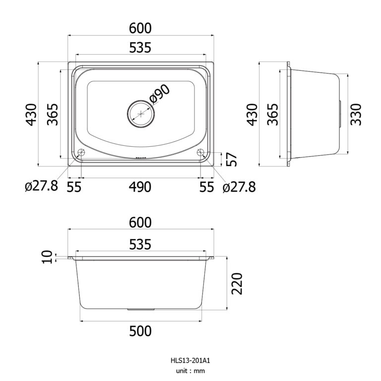ชุดอ่างซิงค์สเตนเลส 1 หลุม (201)แบบไม่มีที่พัก