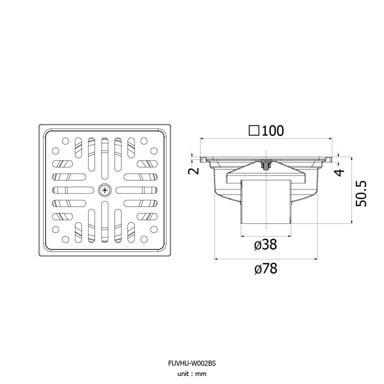 ตะแกรงกันกลิ่นทรงสี่เหลี่ยม 4″ฝาเหลี่ยมท่อขนาด 1.5″ อัตราการระบายน้ำ15.00ลิตร/นาที