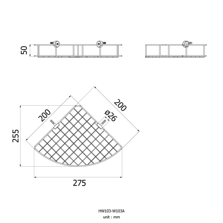 ตะแกรงเอนกประสงค์ ทรงโค้งเข้ามุม แบบติดผนัง ขนาด200x275x50มม.