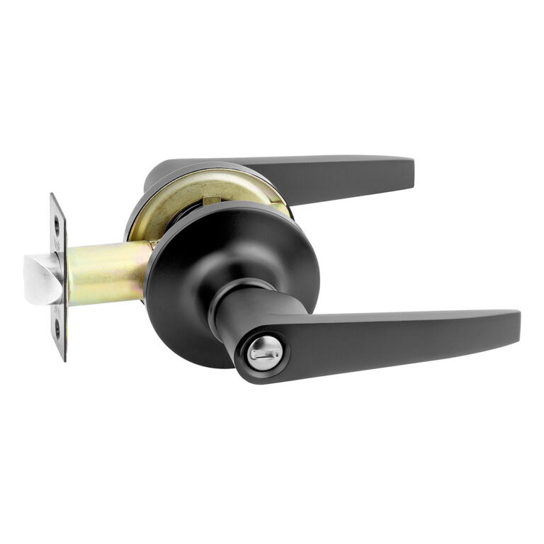 มือจับก้านโยกอลูมิเนียม สำหรับห้องน้ำ แบบไม่มีลูกกุญแจ สีดำระบบ TUBULAR LOCK