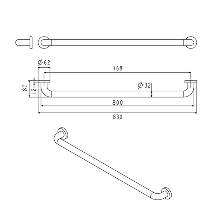 - ราวทรงตัวสเตนเลส เส้นผ่าศูนย์กลาง 32 มม. ขนาด 800 มม.