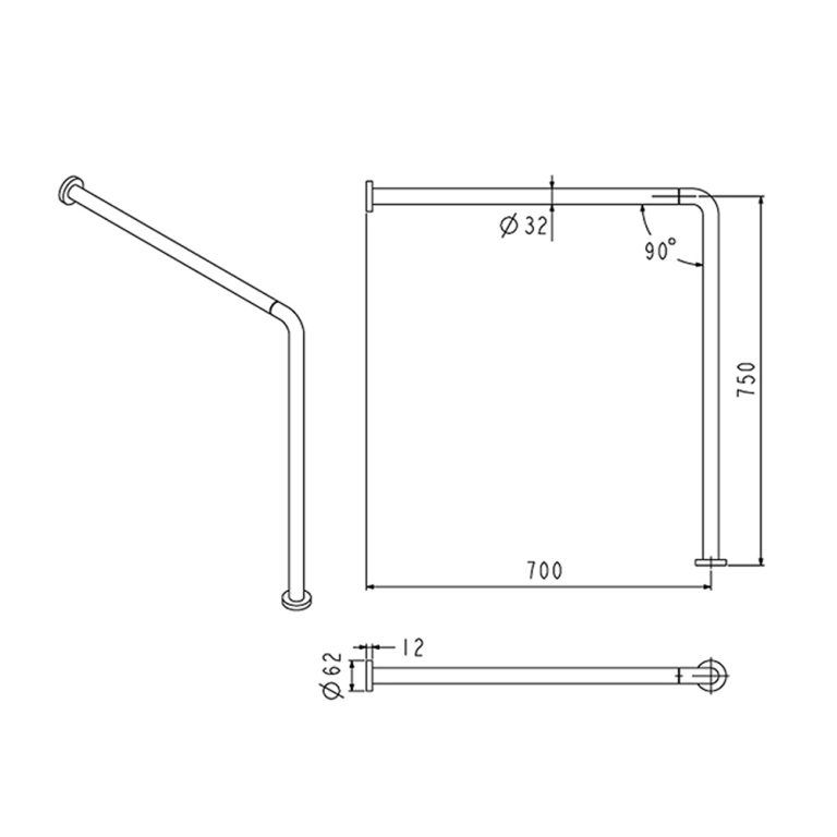 ราวทรงตัวสเตนเลส เส้นผ่านศูนย์กลาง 32 มม. ขนาด 700×750 มม.