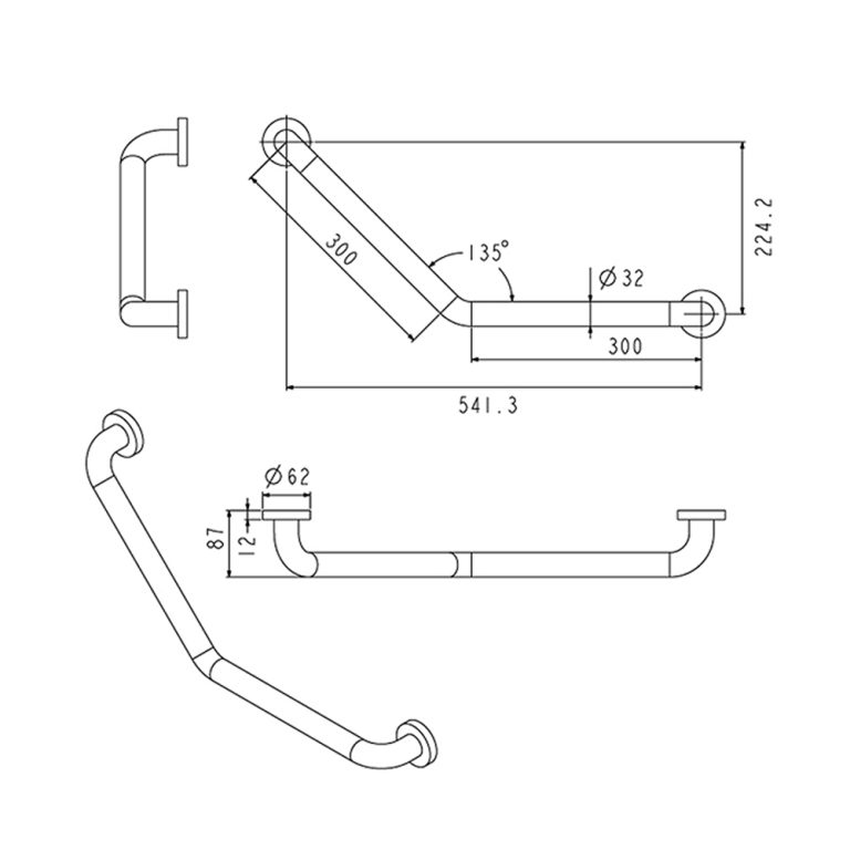 ราวทรงตัวสเตนเลส 135 องศา เส้นผ่านศูนย์กลาง 32 มม. ขนาด 300×300 มม. (ซ้าย/ขวา)