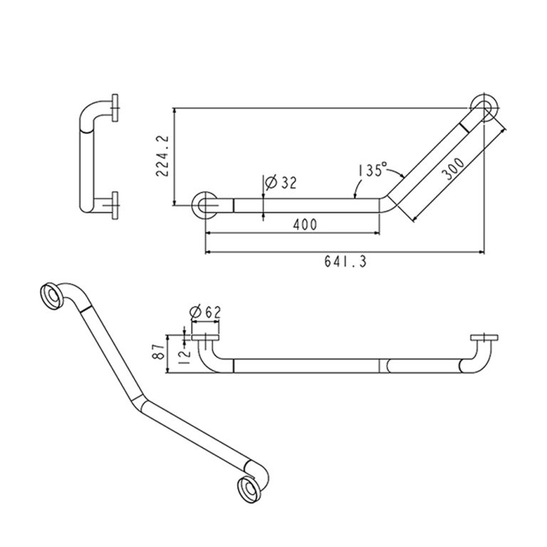 ราวทรงตัวสเตนเลส 135 องศา เส้นผ่านศูนย์กลาง 32 มม. ขนาด 300×400 มม. (ซ้าย)