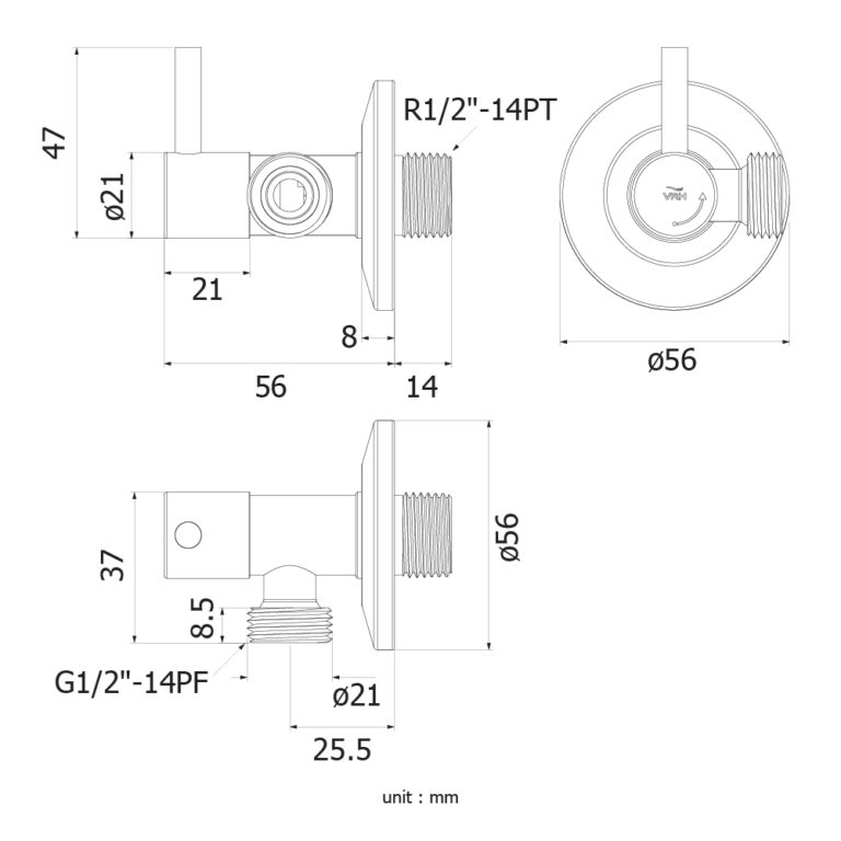สต๊อปวาล์ว 2 ทาง แบบติดผนัง รุ่น BONNY ฝายาว+ฝาครอบ