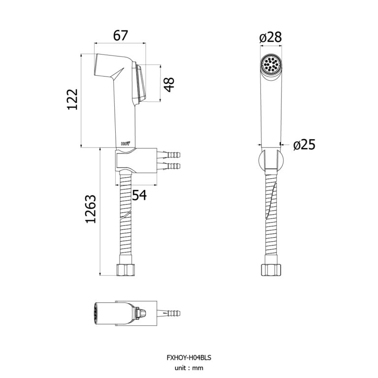 หัวฉีดชำระพลาสติกสีน้ำเงิน สายสเตนเลส 1.2 เมตร และขายึด รุ่น Hori